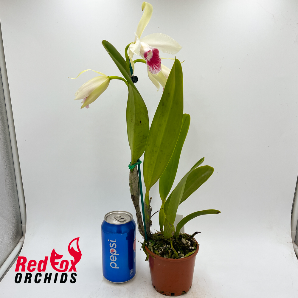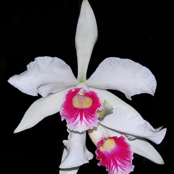 Cattleya purpurata carnea is a must-have species with its large white flowers and a carnea red lip and beautiful fragrance. Grow in bright light, water when the potting mix approaches dryness. Cattleya purpurata is native to Brazil and is a very durable plant capable of growing in a wide variety of potting mixes and temperatures.