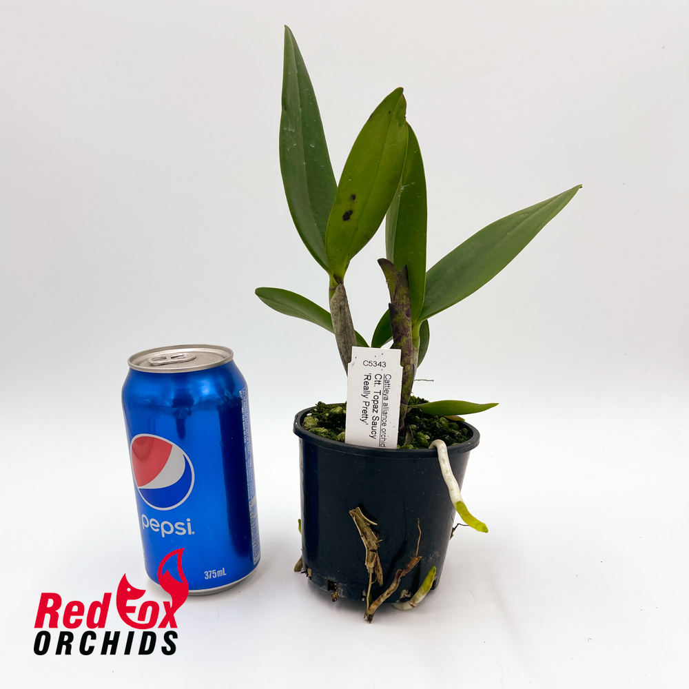 Looking for a salmon and gold flower with a little bit of sass? Look no further than the Cattlianthe Topaz Saucy 'Really Pretty'. This gorgeous flower features burgundy spotting on the sepals, and a purple lip with white in the throat. But what really sets this flower apart are the clusters of waxy flowers that are held above the leaves. These flowers are sure to make a statement in any garden, and they bloom late summer to early autumn. So don't wait - add a little bit of spice to your garden with the Cattlianthe Topaz Saucy 'Really Pretty' today!