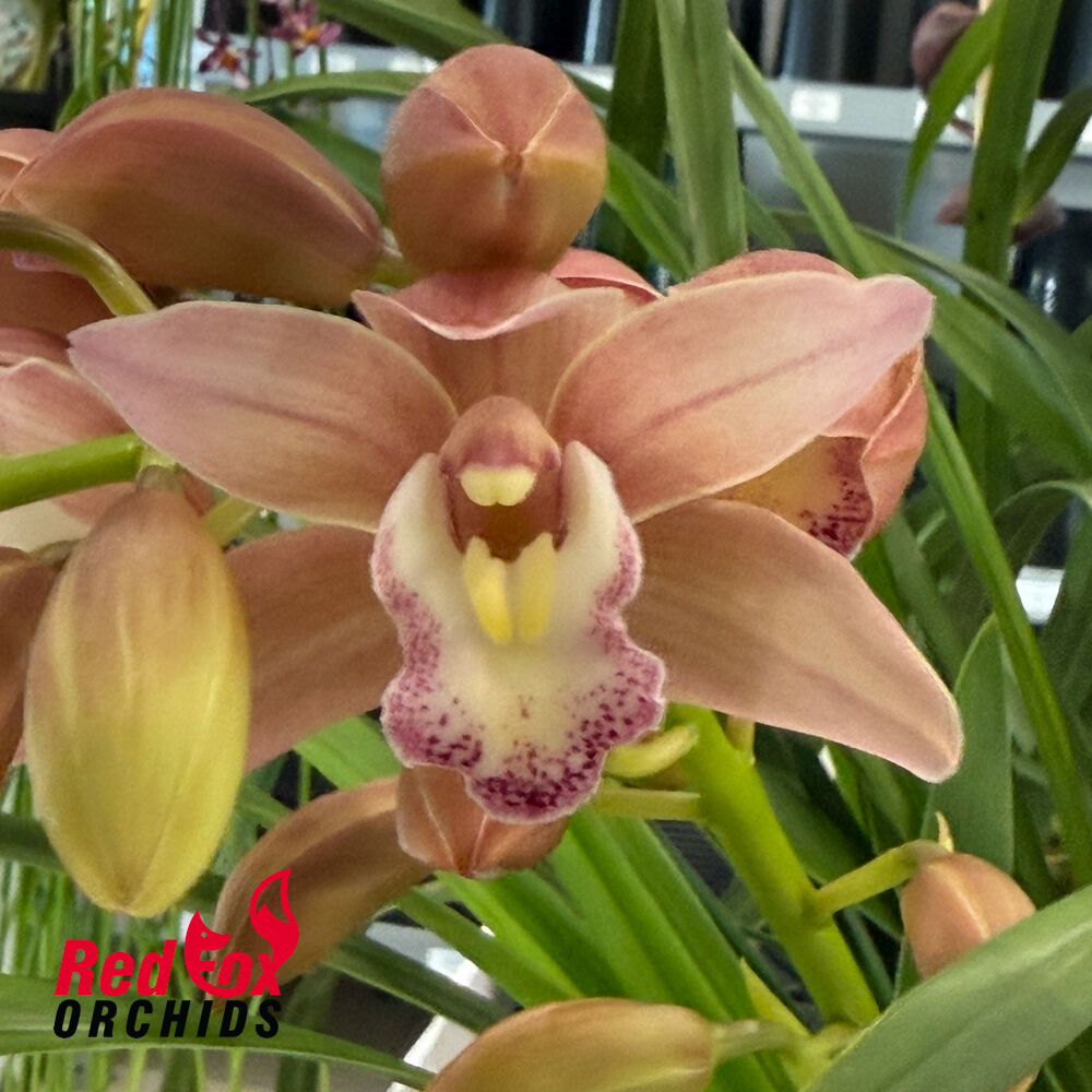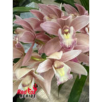 Cymbidium New Century 'Rosie' with multiple flower spikes