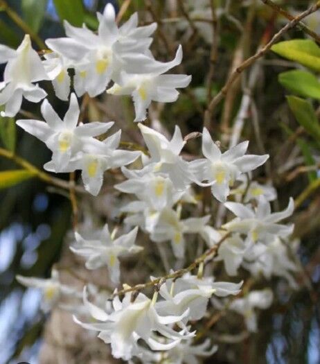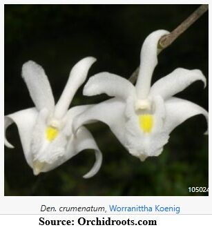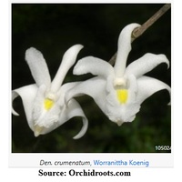 Dendrobium crumenatum species orchid is commonly referred to as the pigeon orchid. Dendrobium crumenatum has a wide distribution being native to Hong Kong, Taiwan, India, Sri Lanka, Andaman Islands, Myanmar, Thailand, Malaysia, Cambodia, Laos, Vietnam, Lesser Sunda Islands, Moluccas, Sulawesi, Sumatra, New Guinea, Christmas Islands, Guam and the Philippines.