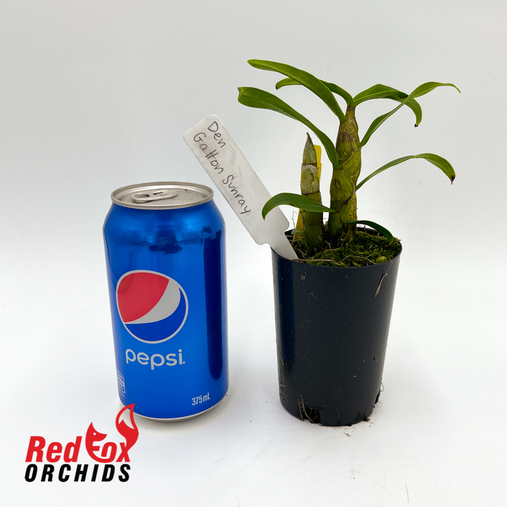 Dendrobium Gatton Sunray is an orchid hybrid originated by Colman in 1919. It is a cross of Den. pulchellum x Den. Illustre. This plant has a very commanding presence and it is still after all these years a stunning plant to behold when in flower. These are large growing plants that stand about 3 feet tall.