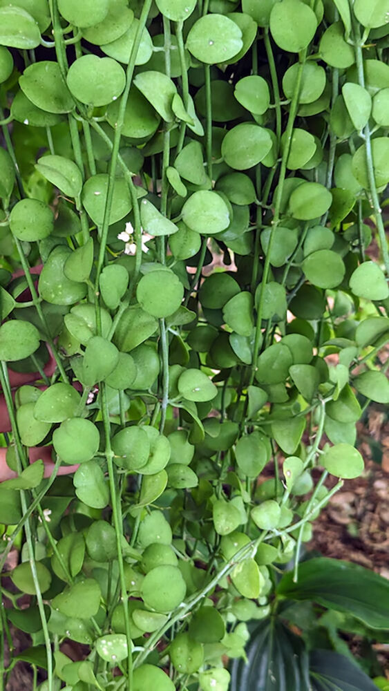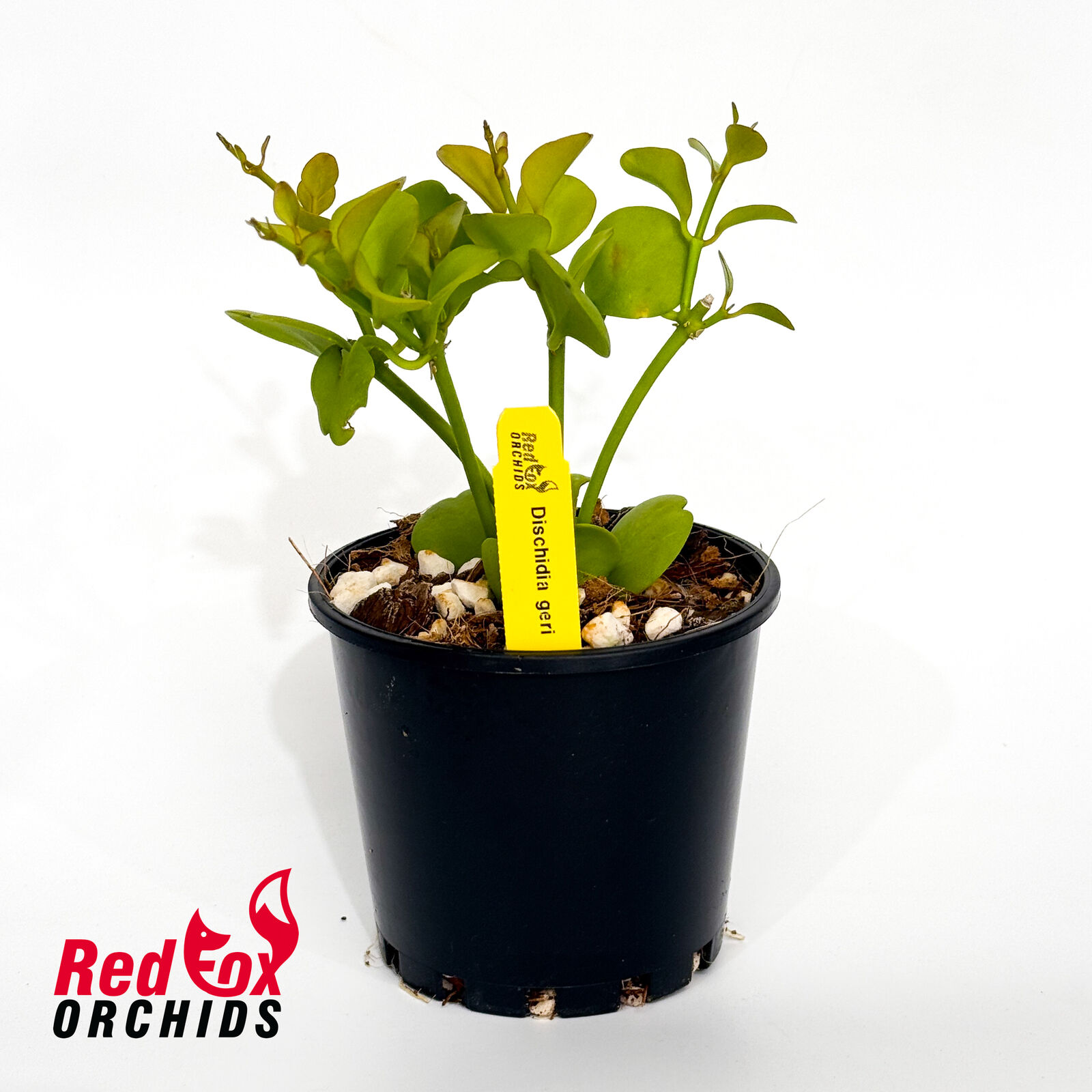 Dischidia geri has soft green, coin-shaped leaves measuring 20mm in diameter, with new foliage emerging in a pink-red colour. Cascading form – looks stunning in a hanging basket or large terrarium.