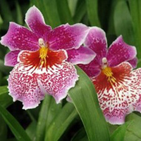 Odontonia Memoria Martin Orenstein 'Lulu' HCC/AOS puts out a great flower display. This kind of plant always gets oohs and ahs at our nursery, and it makes a nice addition to any orchid collection. This one is a really nice mericlone of an HCC-awarded Odontonia orchid. The breeding is Odtna. Aglaon x Milt. Martin Orenstein. The flowers look like the one in the first picture, a stunning, in-your-face pink. They can be nearly 7 cm across. The judges said that the flowers on the award winner were a "charming intersectional hybrid exhibiting the best qualities of its Miltoniopsis heritage."