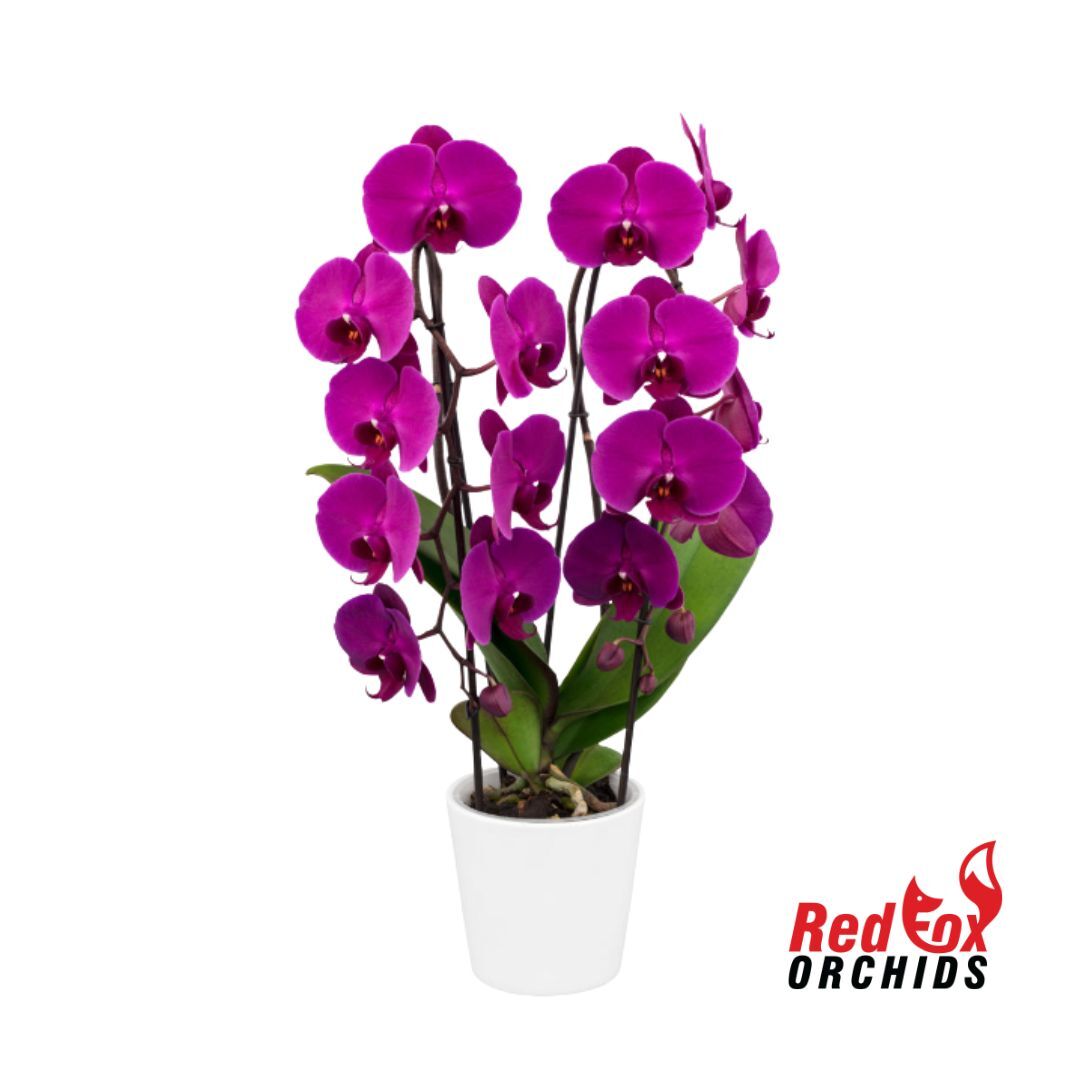 Phalaenopsis Orchid - Phalaenopsis Freeride has vibrant purple flowers with a deep purple lip.