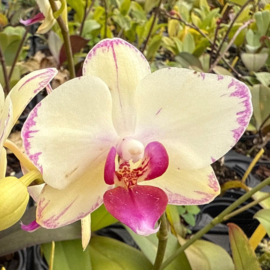 This warm-growing orchid is best suited to bright indirect light, consistent moisture, warmth, and good air movement in a free-draining Phalaenopsis mix. Mature plants produce long-lasting flowers on upright spikes, making it an excellent choice for indoor growing and collectors seeking unusual bloom form. Grown by Red Fox Orchids.