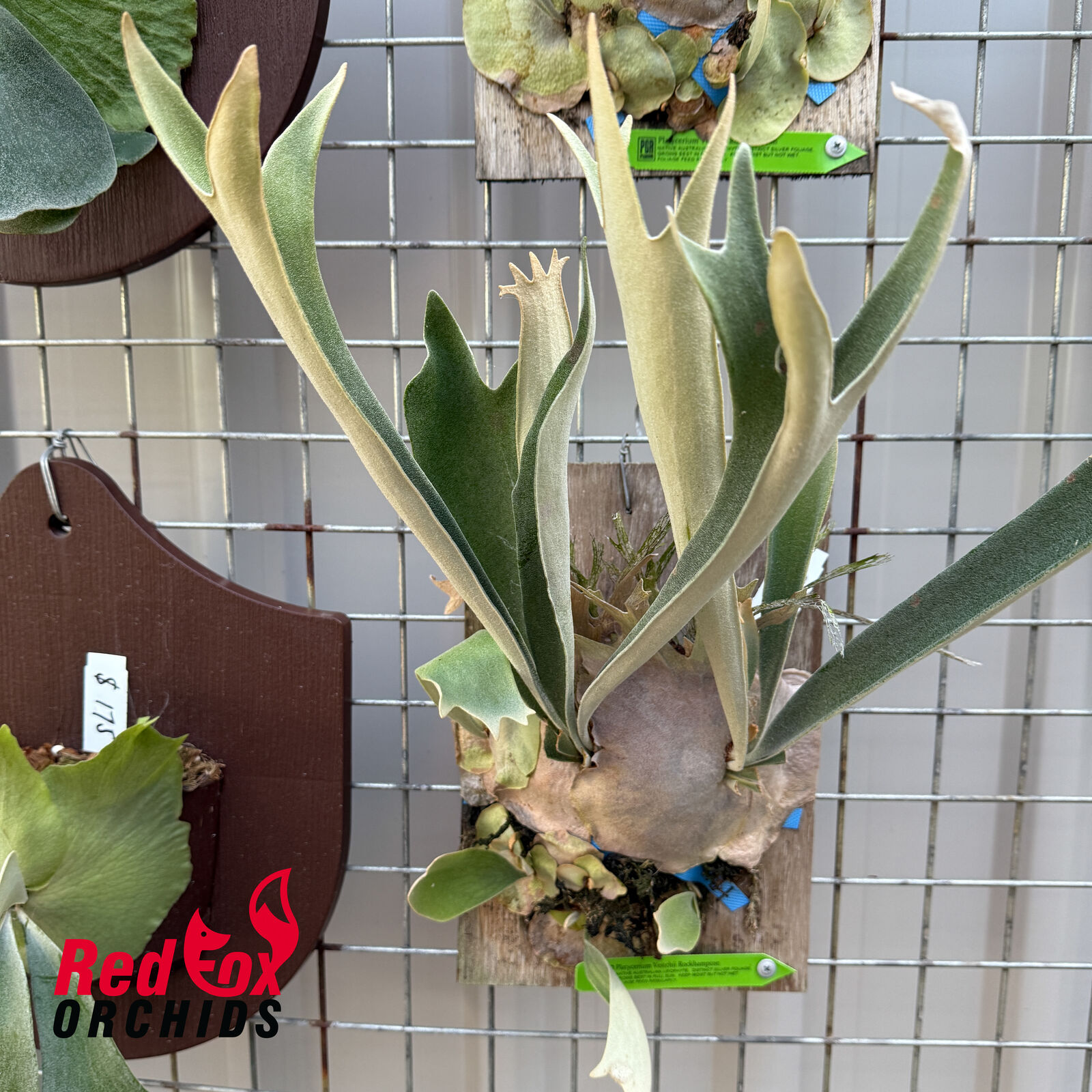 Platycerium veitchii, called the silver elkhorn fern or the silver staghorn fern, is a species of fern in the family Polypodiaceae, native to Queensland. It has gained the Royal Horticultural Society's Award of Garden Merit as an ornamental.