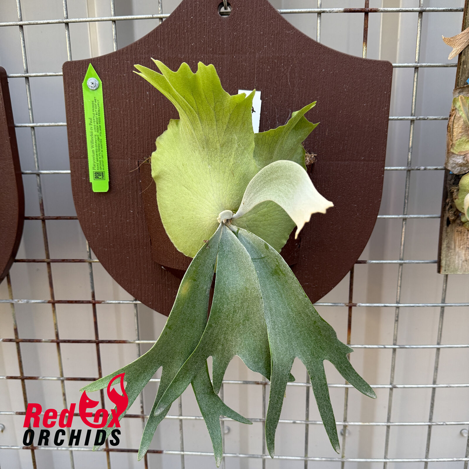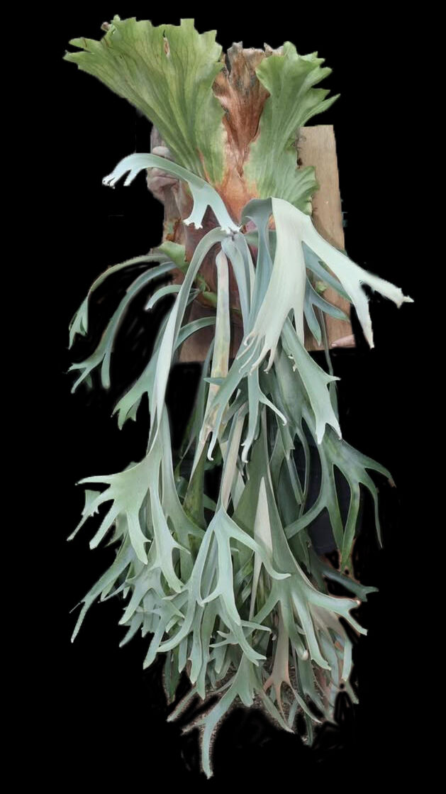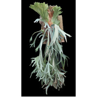 Platycerium willinckii 'Java' (Java Staghorn Fern) isa popular, elegant epiphytic fern known for its tall, deeply lobed shield fronds that turn brown and create a distinct netted look, contrasting with its long, hanging fertile fronds that emerge edgewise and have silvery undersides. Native to Java, it's a collectible variety within the willinckii species, often grown indoors for its unique texture, tolerating dry spells by going dormant and restarting growth with rains, making it relatively easy to care for with bright indirect light and high humidity.