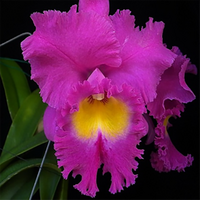 Brassolaeliocattleya Nan Chang Silk 'CT Olympic Torch' has large flowers that are a vivid hot pink to purple colour. Large round deeper lip with yellow in centre. Good shape and substance on tall strong stems.