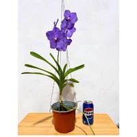 Vanda Somsri Glory Blue is a hybrid Vanda selected for its vibrant blue to violet flowers with strong colour saturation and classic round form. Plants produce upright spikes carrying multiple long-lasting blooms, often with a tessellated pattern and good substance. As a warm-growing, monopodial orchid, it requires very bright light, high humidity, strong air movement, and frequent watering, typically grown in baskets with little to no media. A striking hybrid suited to experienced growers seeking intense colour and repeat flowering.