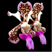 Vanda tricolor var. suavis is found in central and eastern Java as a large sized, hot growing epiphyte, lithophyte or terrrestrial with long, erect stems carrying curved, ligulate, imbricate, unequally bilobed apically leaves that blooms on an axillary, erect to suberect, 5 to 7 cm long, shorter than the leaves, 15 or more flowered inflorescence with large, fragrant, waxy, long-lived, color variable flowers occuring in the fall and winter. V suavis, which hails from central and eastern Java has an inflorescence with 15 or more flowers, narrower and longer sepals and petals and the apical lobules of the lip are turned abruptly downwards and are paler than the rest of the midlobe. Then there is the similar Vanda tricolor from west Java which has an inflorescence with 6 to 9 flowers, the sepals and petals being different in width and are shorter, the side lobules being erect, and they and the midlobe are evenly colored.